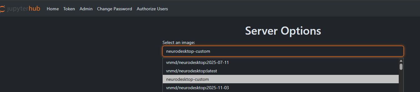 choose “neurodesktop-custom” when starting your jupyter server
